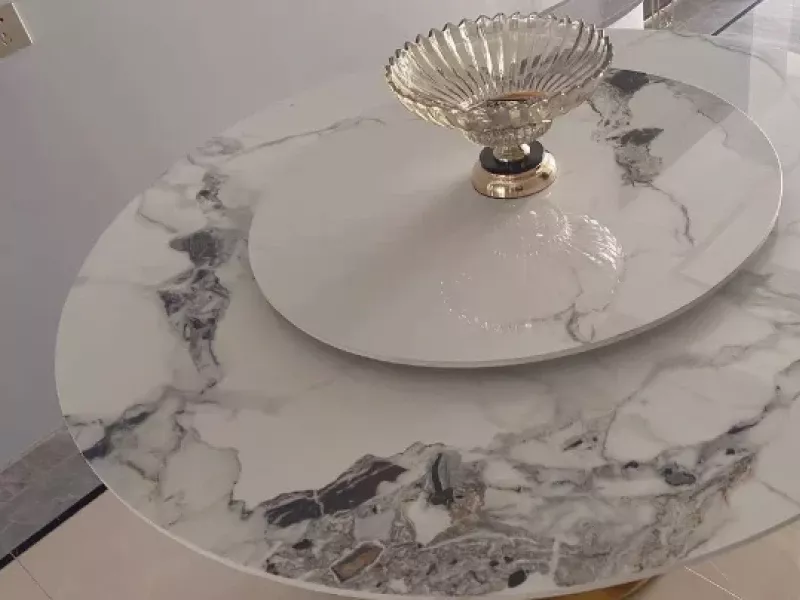 Transform your dining space into a bastion of luxury with our Marble Round Dining Table. Meticulously crafted for those who appreciate the finer things in life, this table is not just a piece of furniture, but a statement of sophistication. The resplendent gold stainless steel frame supports a majestic slate top, where every meal becomes a celebration. With its built-in turntable, this dining table promises to elevate your dining experience to a new level of convenience and style.