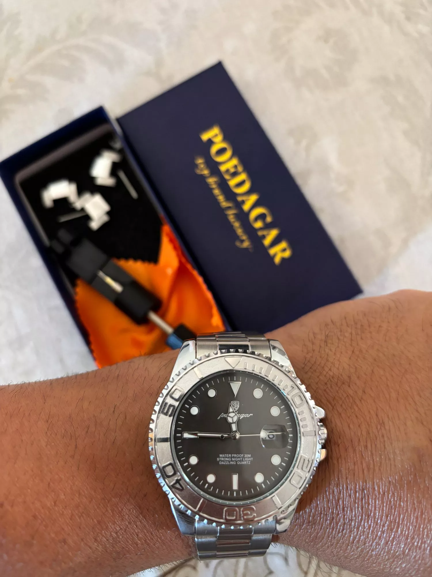 Elevate your wristwear game with this stunning luxury men’s watch designed for those who appreciate timeless style and performance. Whether you’re dressing for business, casual outings, or sports, this multifunctional timepiece offers the perfect balance of elegance and durability. Its sleek stainless steel band and case, combined with a luminous display and waterproof features, make it your go-to accessory—day or night, rain or shine.