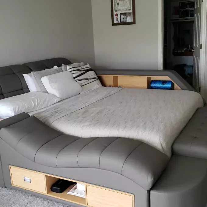 Luxury Smart King Bed with Massage Recliner, Bluetooth Speakers, Storage & USB Ports