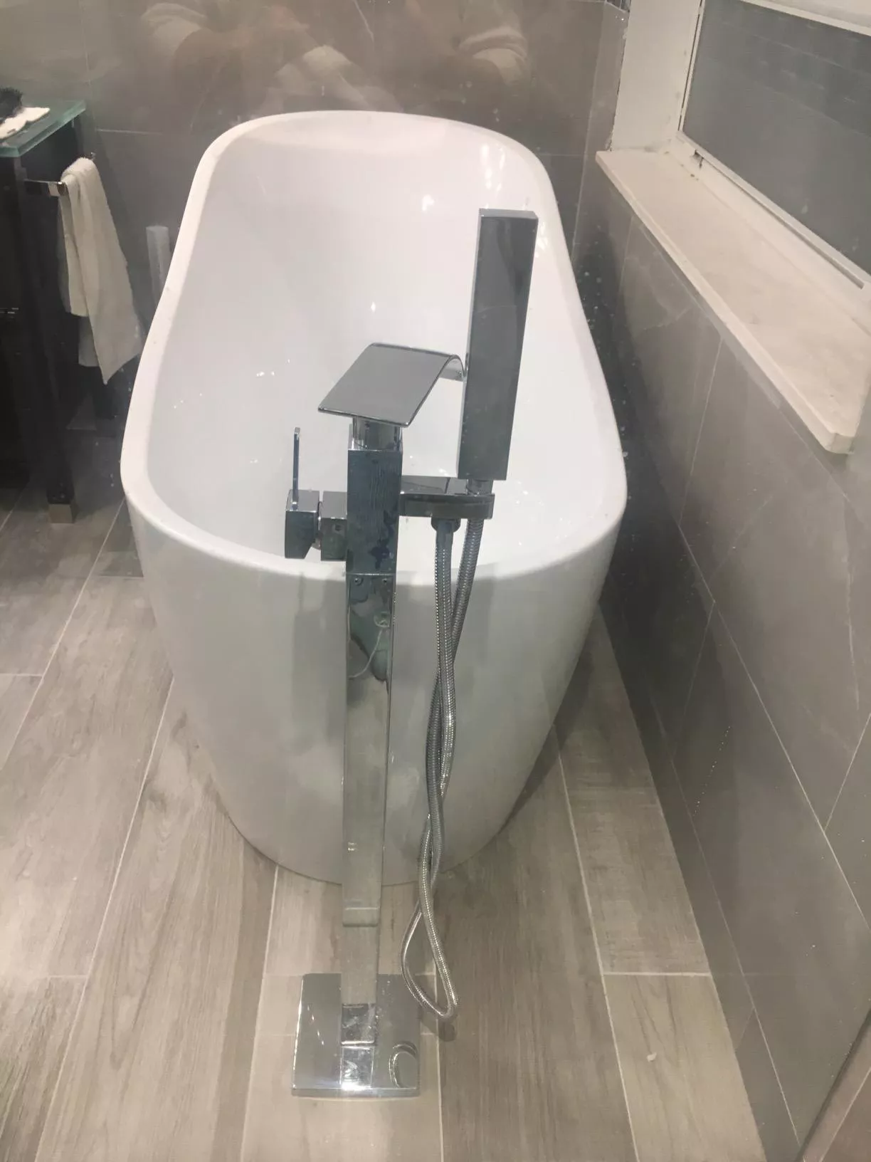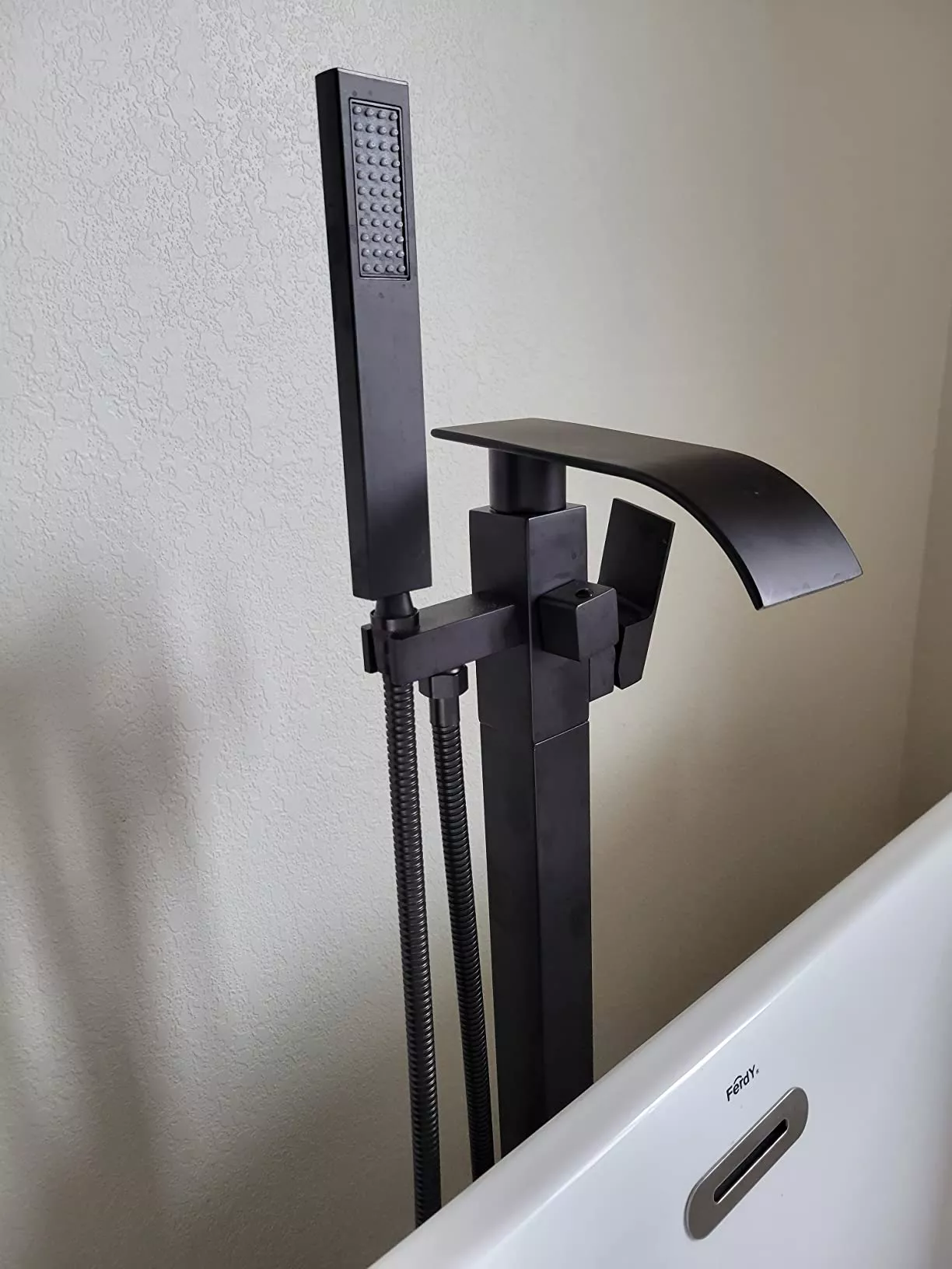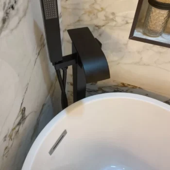 This floor-standing faucet is not only a functional addition but also an artistic statement. Ideal for modern, minimalist, or any contemporary bathroom decor, it stands out as a piece of art. Whether you are renovating or building a new bathroom, this faucet adds a touch of elegance and sophistication.