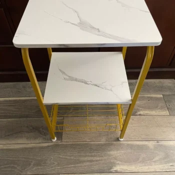 Whether you’re enjoying a quiet cup of tea in the bedroom or entertaining guests in the living room, our table serves as the perfect companion for any occasion. Its small footprint makes it ideal for cozy spaces, while the additional layers offer extra room for your favorite reads and essentials. The smooth marble texture finish not only adds a touch of class but is also easy to clean, ensuring your table remains a centerpiece for years to come.