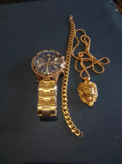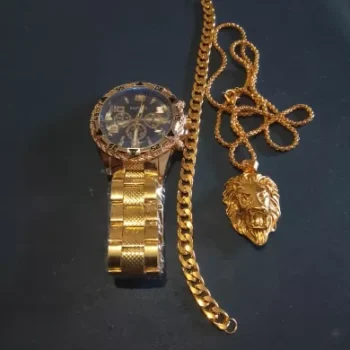 Step up your accessory game with this striking 3-piece fashion set designed for modern men. Featuring a bold wristwatch, a sleek bracelet, and a matching necklace, this collection is crafted to make a lasting impression wherever you go. Whether you’re dressing for a business meeting, a night out, or a casual gathering, this set completes your look with effortless sophistication.