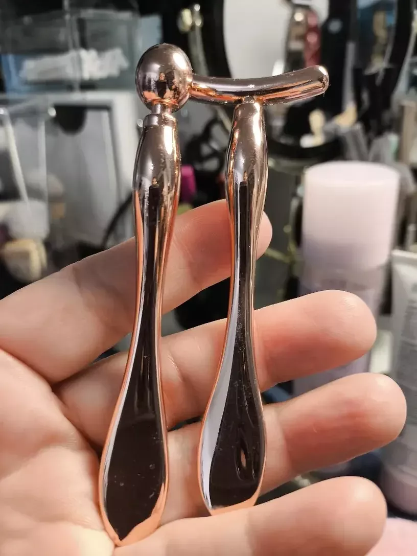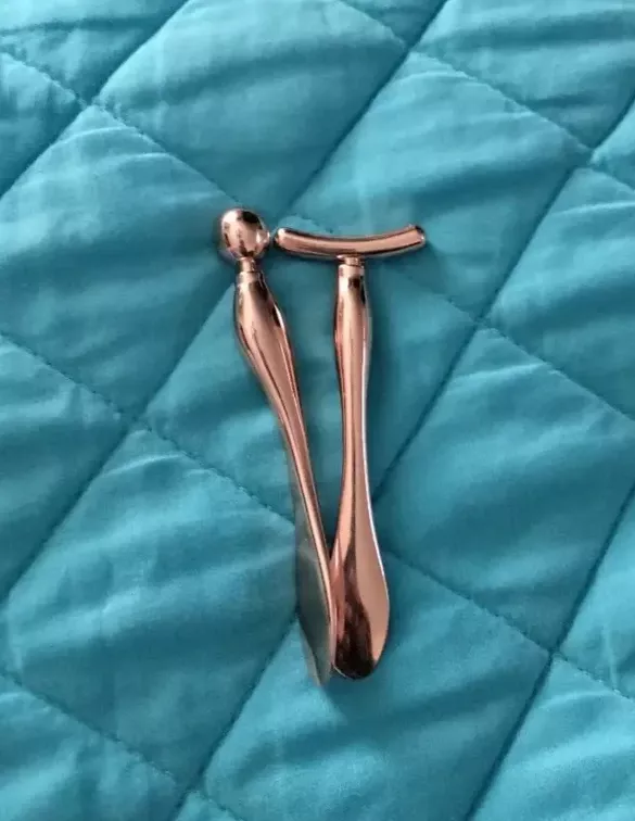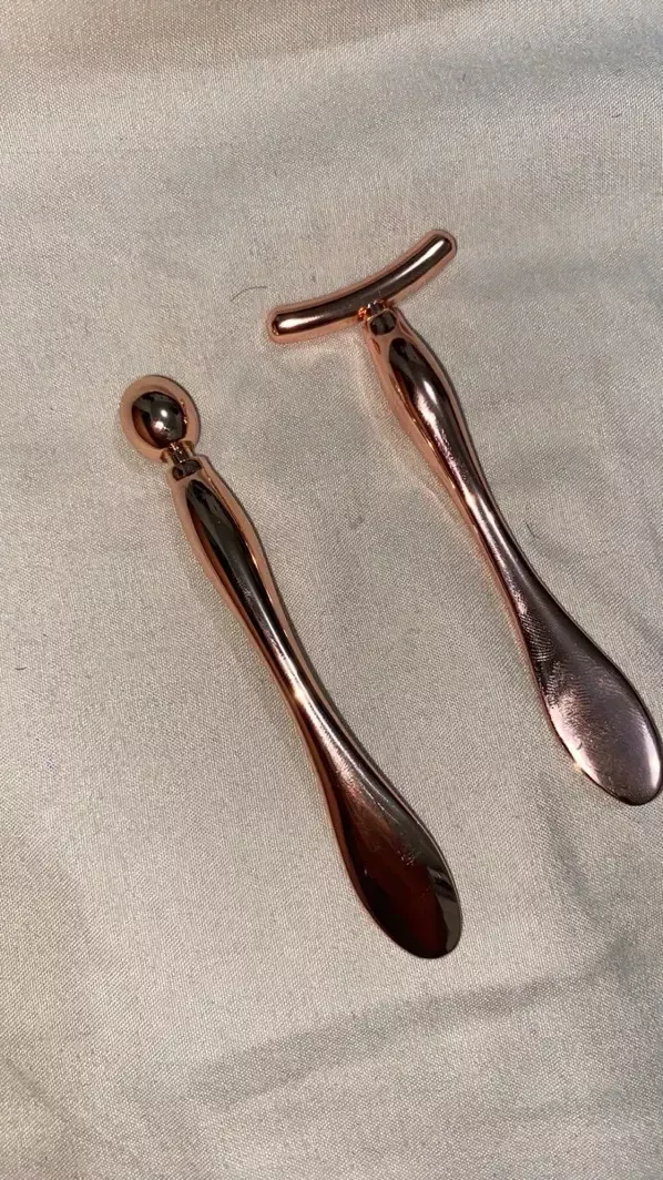 Crafted from premium zinc alloy, this tool is durable, non-toxic, and safe for delicate skin around the eyes. It includes two lightweight, travel-friendly wands featuring a smooth rotating head that glides effortlessly across the skin. The ergonomic handle ensures a comfortable grip and precise control, even in hard-to-reach areas like under the eyes or around the nose.