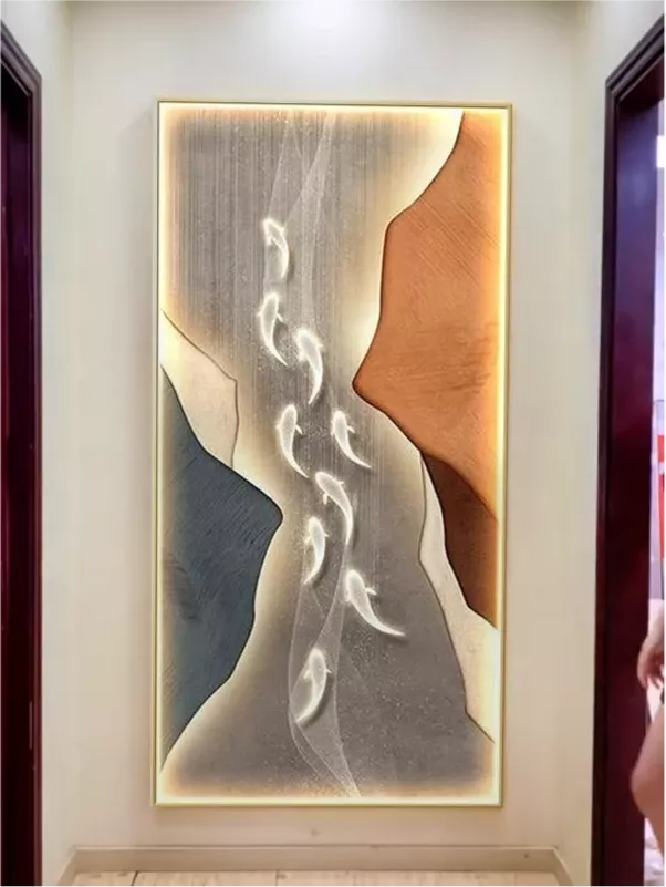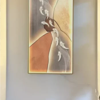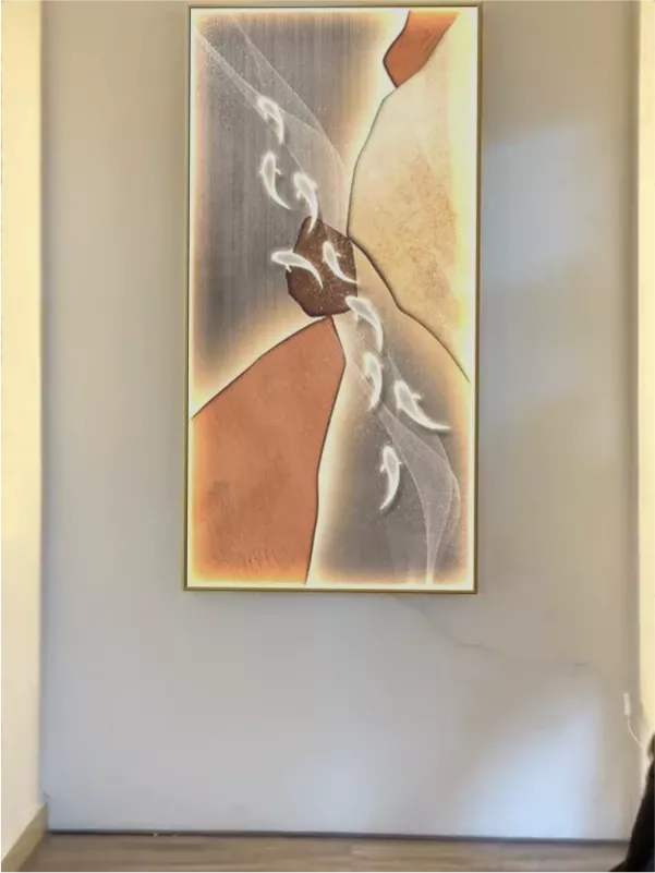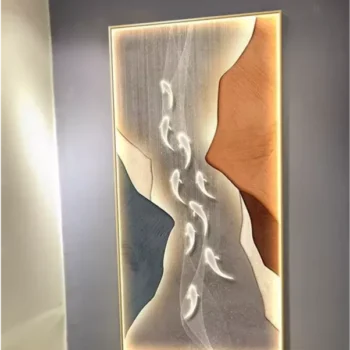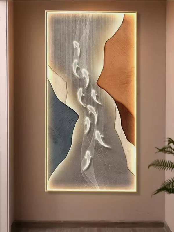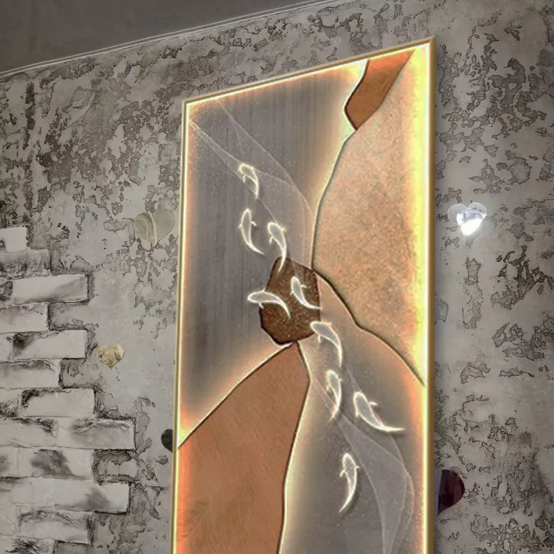What sets this piece apart is its stunning abstract fish design, which not only serves as a source of light but also as a unique piece of art. The decorative painting paired with LED lighting brings a modern twist to classic wall decor. The lamp’s body is crafted from durable iron with a luxurious gold finish, and the meticulous plating process ensures a long-lasting luster.