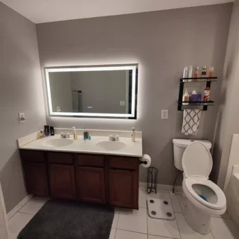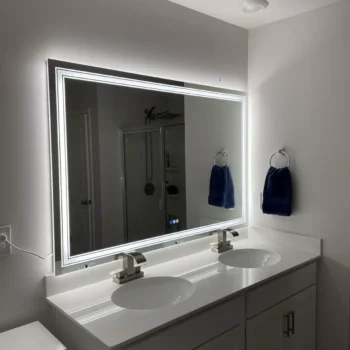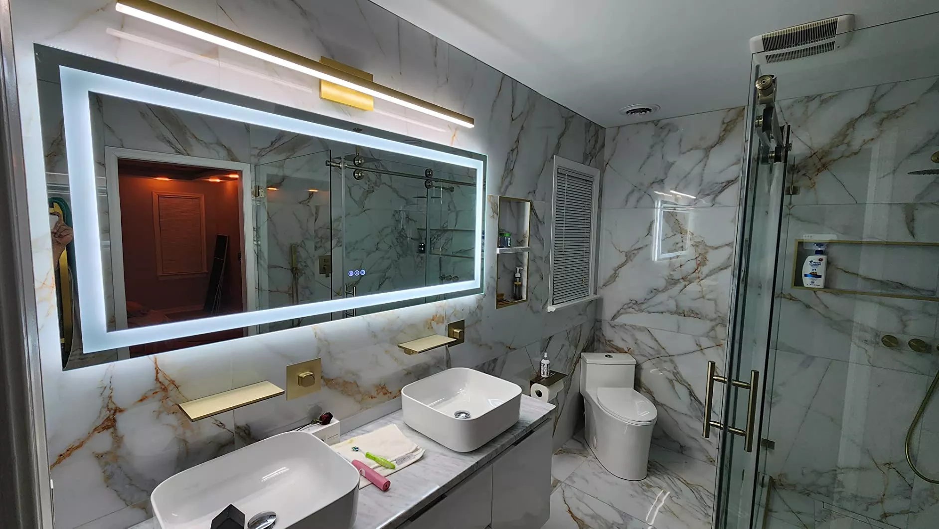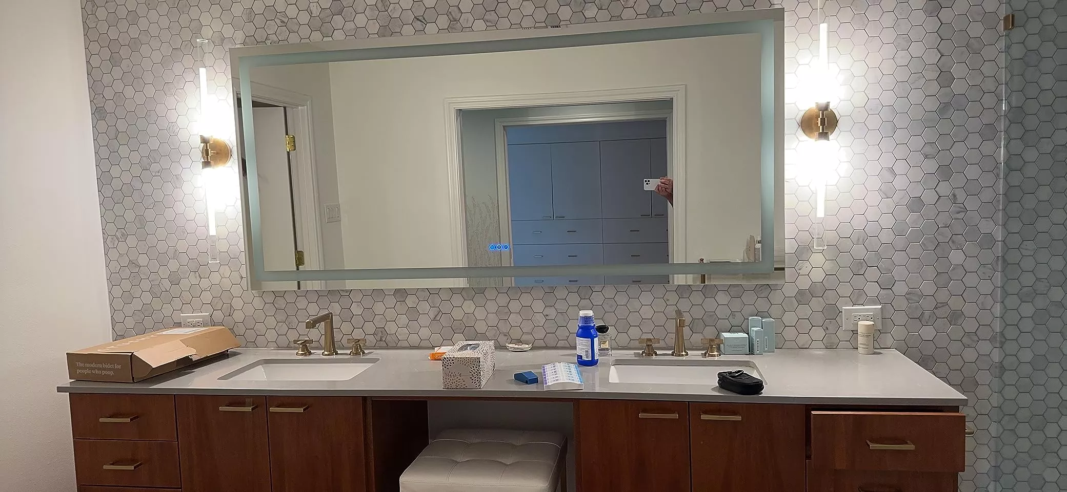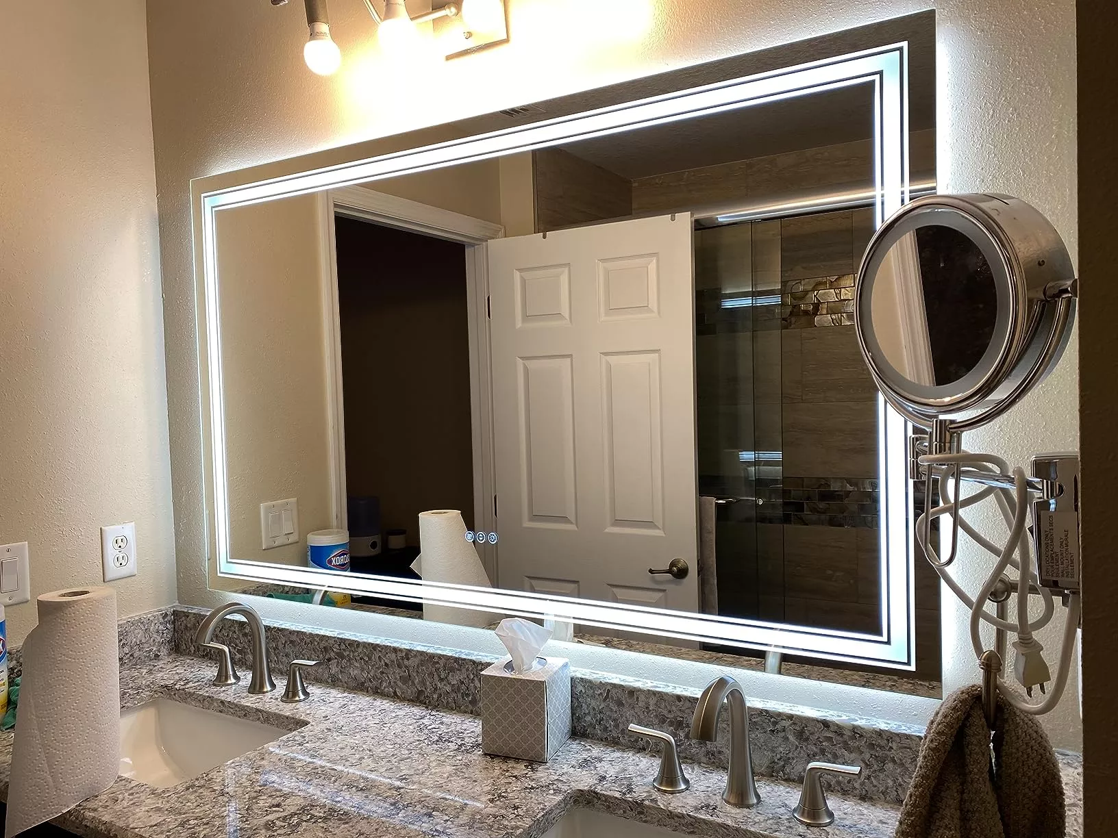 Apart from its stunning design and practical features, the safety and durability of this mirror set it apart. Made from high-definition glass with a solid aluminum backing, it’s designed to last. The UL-certified components and IP44 waterproof rating provide an added layer of security and peace of mind.