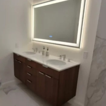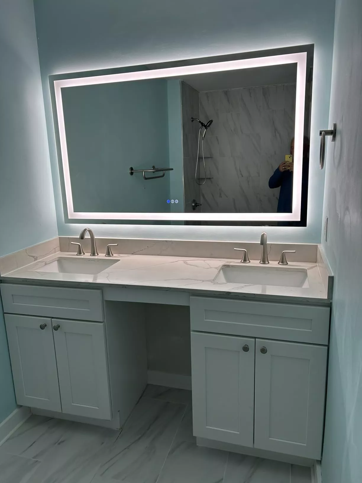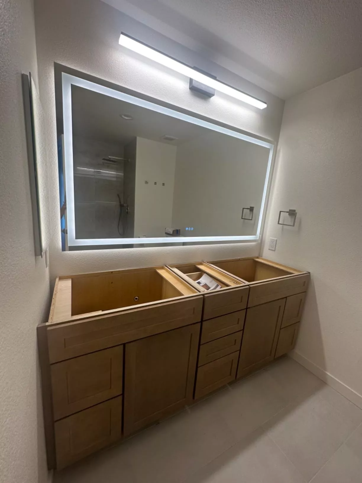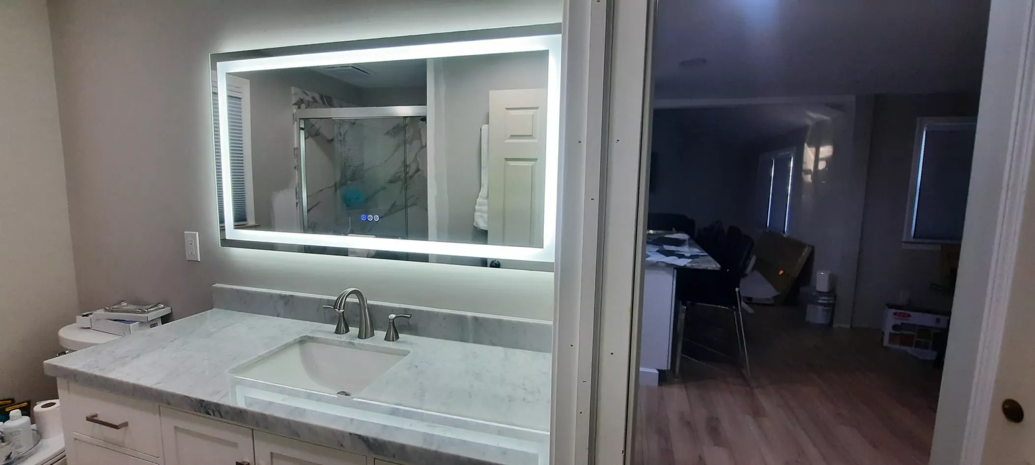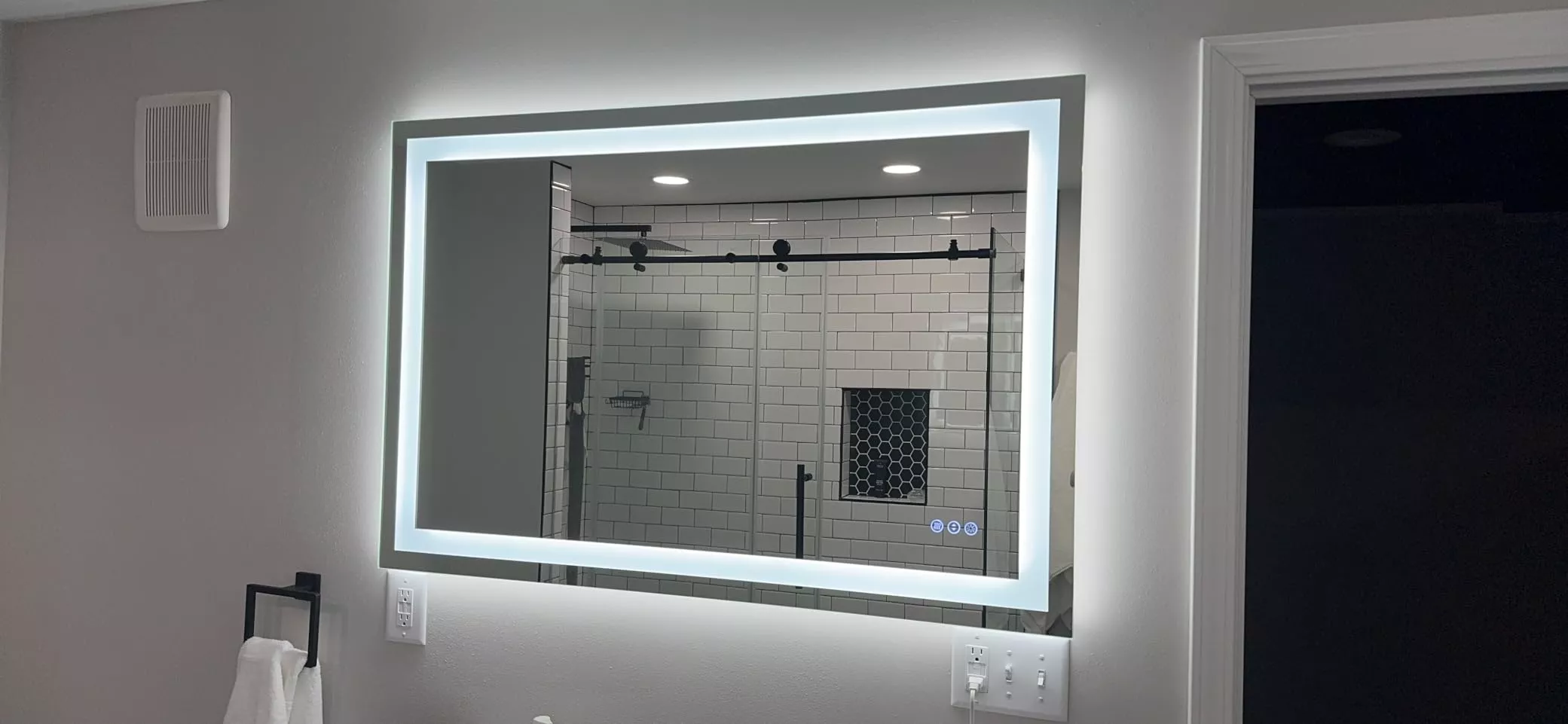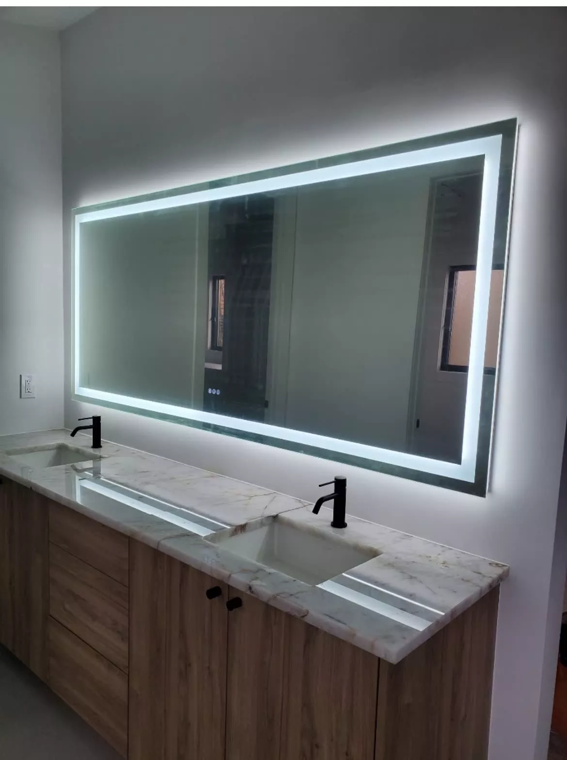 Discover the ultimate blend of functionality and style with our Modern Frameless LED Lighted Bathroom Mirror. Crafted for those who appreciate modern design and innovative features, this mirror is a game-changer for your bathroom, makeup room, or powder room. Its sleek, frameless design not only adds a touch of elegance to your space but also creates an illusion of a more open and bright area.