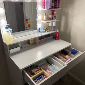 Whether you’re getting ready for the day or unwinding in the evening, our vanity table is the perfect companion. Its sleek design and adjustable mirror make it suitable for all types of rooms, from bedrooms to living rooms, bathrooms, and studies.