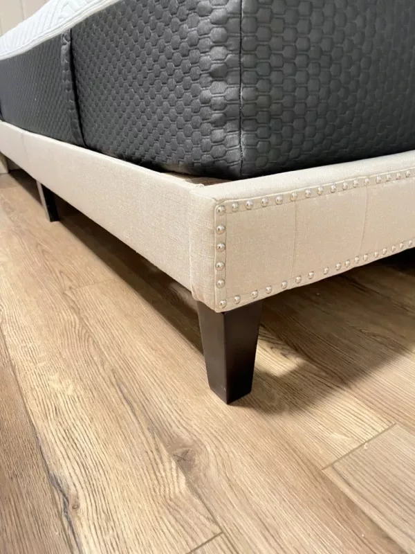 This bed is not just a piece of furniture; it’s a lifestyle choice. Its minimalist modern style effortlessly complements any room, while the high-quality linen upholstery and nailhead trim provide a luxurious look. The bed’s strong pine frame and supportive design make it durable and comfortable, ensuring it remains a centerpiece in your home for years. Ideal for anyone seeking a blend of style, comfort, and durability in their sleeping space.