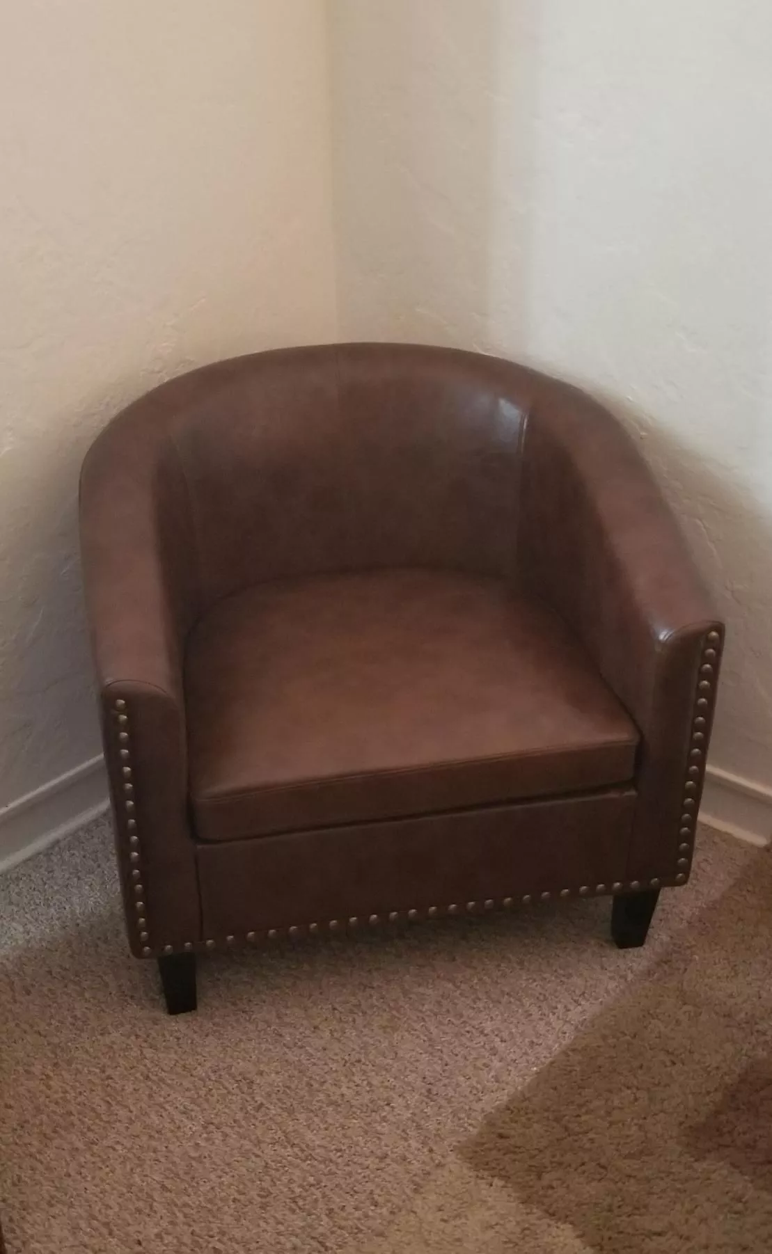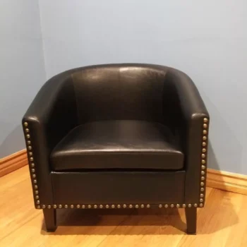 Introducing our Modern Minimalist Faux Leather Barrel Armchair—a perfect blend of elegance and functionality. Crafted to elevate any room, this chair combines a unique barrel design with exquisite detailing, making it a standout piece whether it’s tucked in a cozy corner or showcased prominently in your living space.