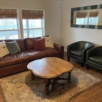 Featuring a robust and sleek barrel shape, our armchair is outlined with sophisticated nailhead trim in an antique brass finish that beautifully accentuates its contours. The high-quality faux leather upholstery not only mimics the look and feel of genuine leather but is also eco-friendly and durable. This chair promises not only style but an environmentally sustainable choice without compromising on luxury.