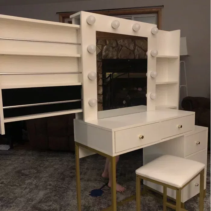 • Five-Drawer Vanity Table: Comes with a large mirror and matching stool, offering a comprehensive solution for all your beauty routines.
