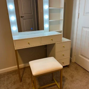 Don’t miss out on the opportunity to elevate your bedroom with our Modern White and Gold Bedroom Vanity Set. Perfect for anyone who appreciates sophistication and functionality in their living space. Order now to transform your beauty routine into something truly special.