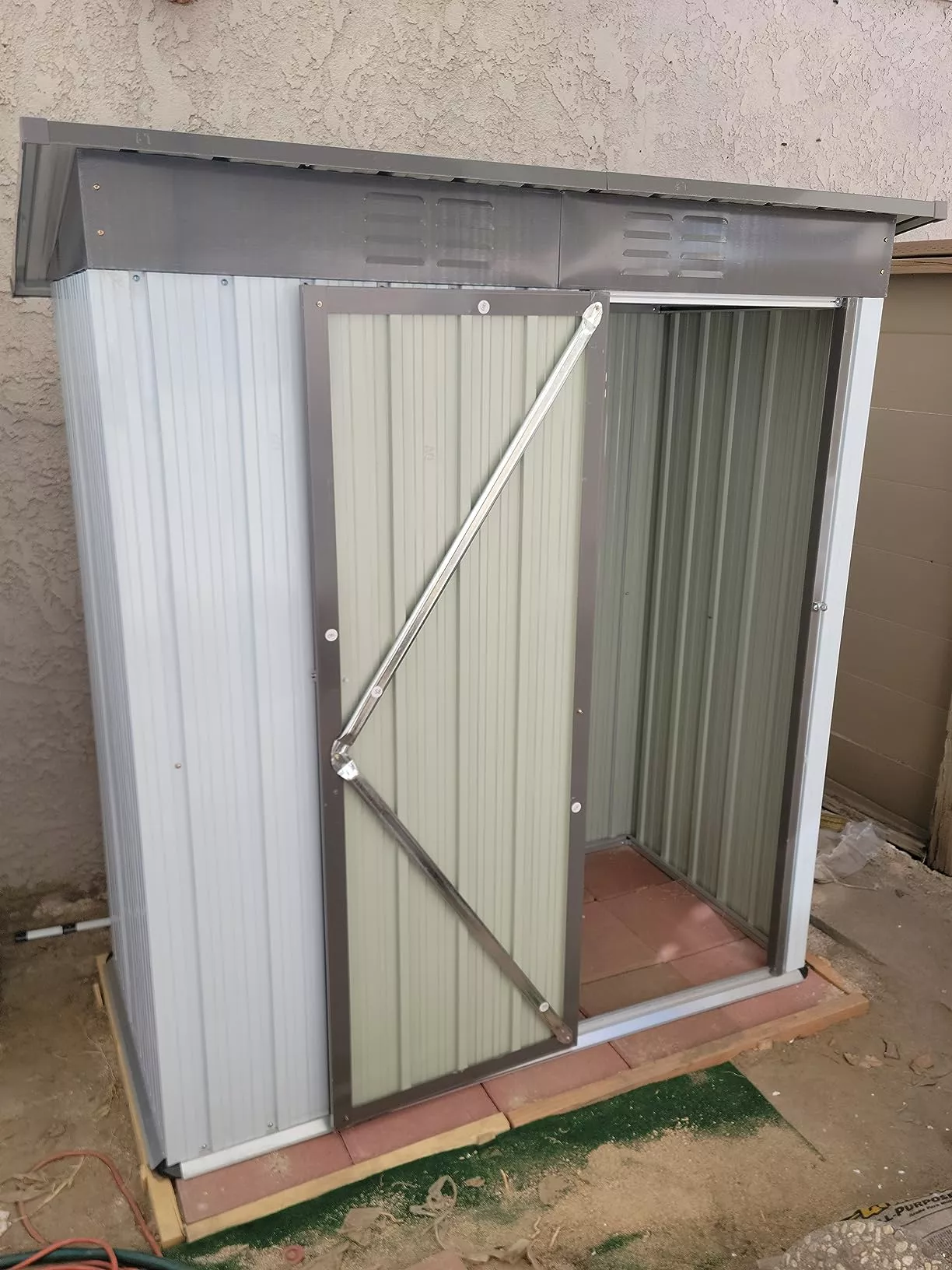 Perfect for any season, our metal shed excels in both form and function. It’s particularly suited for storing garden tools, lawn equipment, and outdoor furniture, helping to maintain a tidy and organized backyard. The robust construction and waterproof capabilities ensure that your items are protected, making this shed a reliable storage solution for years to come.
