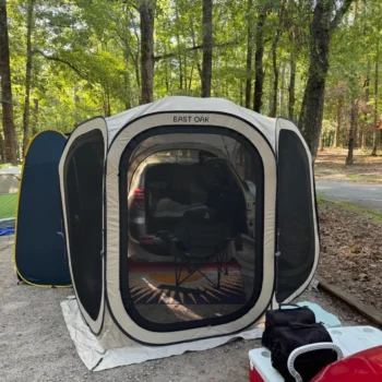 What really impressed me about this canopy is how thoughtfully designed it is; from dual-sided zipper doors for easy access to light strip compatibility offering flexibility for evening use – they’ve considered everything! Plus, there’s room enough inside for standing activities making camping experience all more comfortable.