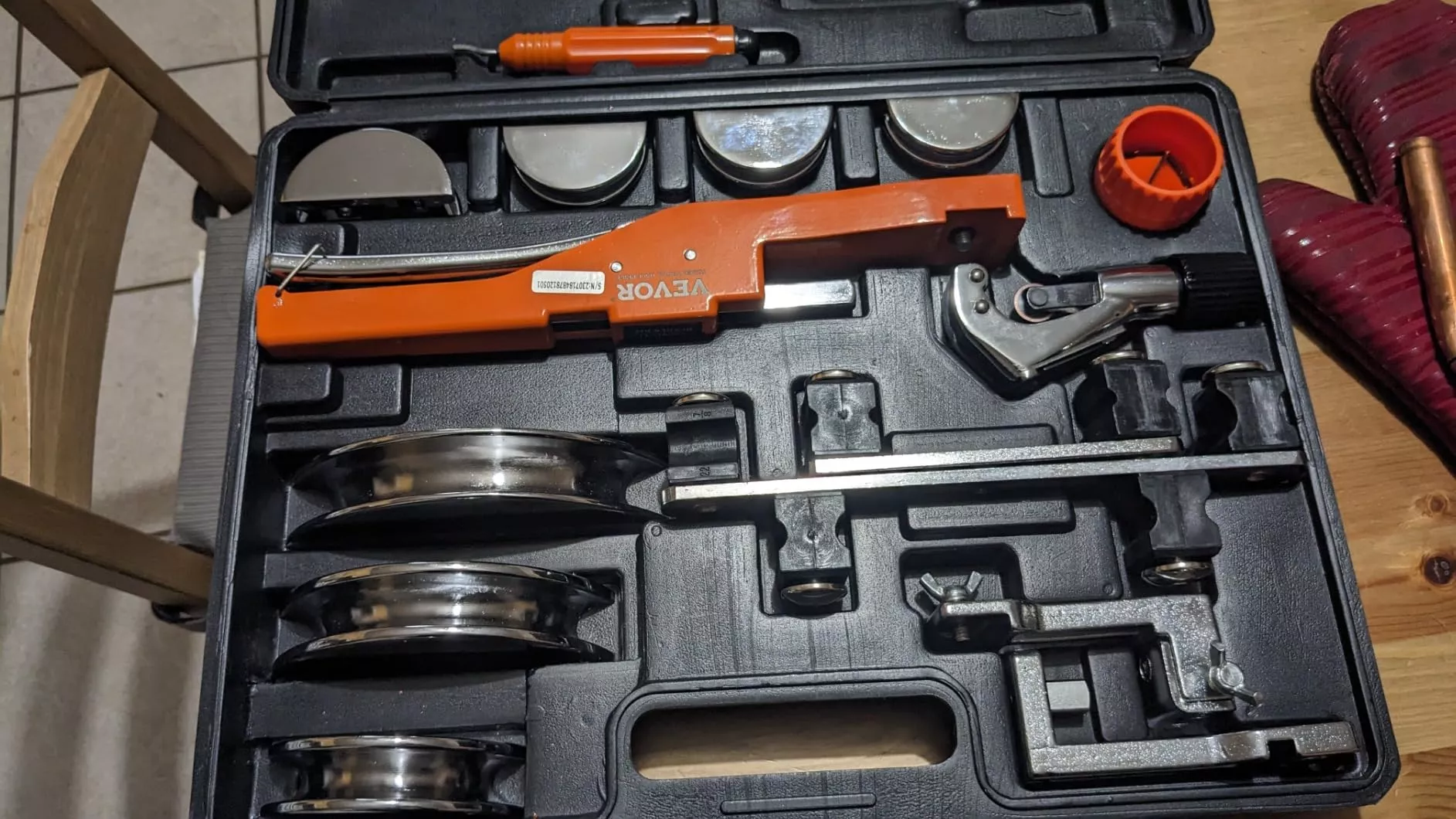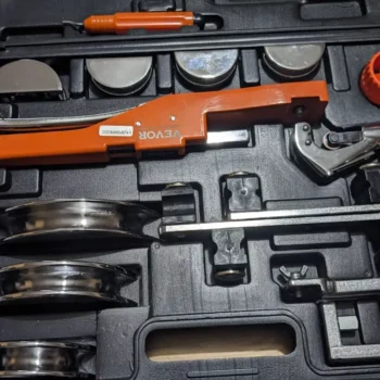 The powerful ratcheting mechanism and ergonomic handle design provide maximum leverage with minimal effort. No need for two hands or awkward setups—this tool lets you work faster and smarter. Designed for copper and aluminum tubing, it delivers reliable, kink-free results every time. The comprehensive kit includes 7 interchangeable dies, a deburring tool, a pipe cutter, and a reverse bending attachment, all packed in a compact storage case.