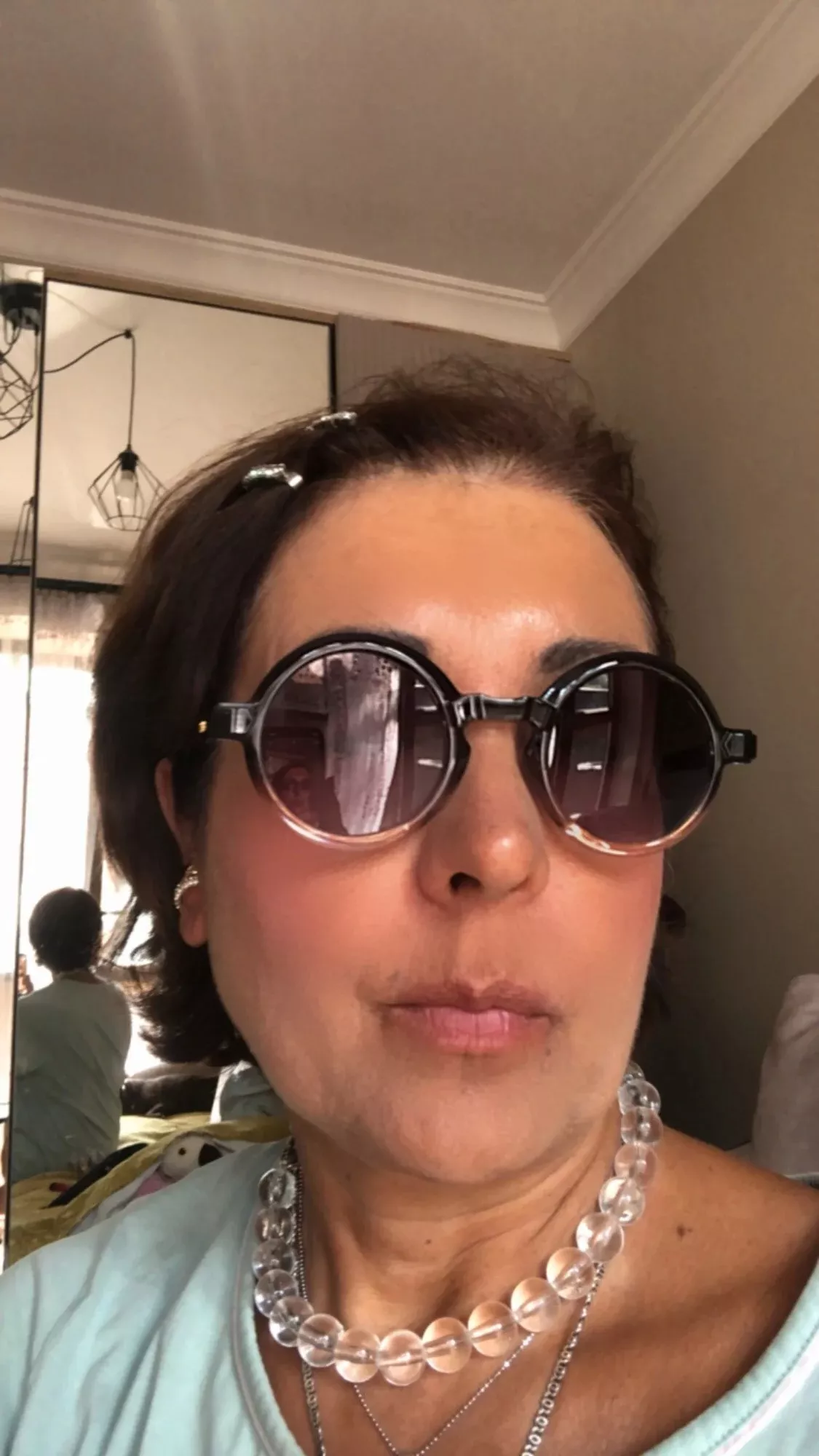 I'm in love with these round glasses 😍 The rivets give them such an edgy look! And they're not just cute - they also protect my eyes from harmful UV rays 👌