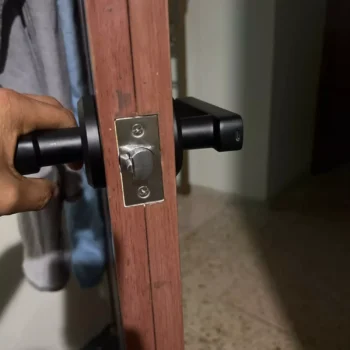 Ideal for bedrooms, home offices, or any indoor space where you need a touch of extra security, this lock fits wooden, steel, brass, and stainless-steel doors ranging from 1.38″ to 1.97″ thick. Simple to install and powered by four #7 dry batteries, it’s built for effortless use and dependable performance. Plus, with silent mode and direction-reversible handle functionality, it suits a wide range of needs and preferences.