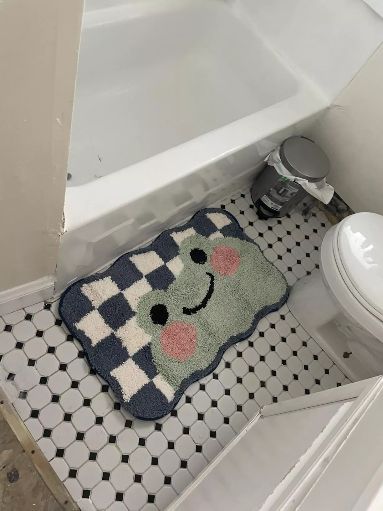 I'm so enamored with this bath mat; it's such a delight to step out of the shower to its charming little face. It's remarkably absorbent, ensuring my bathroom remains puddle-free, and the softness is just a cherry on top. This cheerful mat has quickly become a beloved addition to my bathroom.
