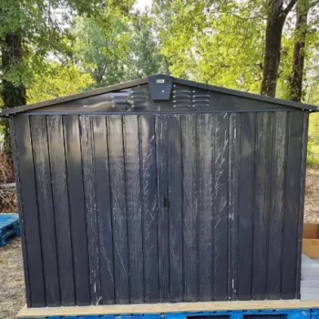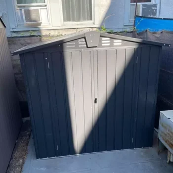 Our garden shed stands out for its blend of functionality and style. It’s perfect for anyone seeking a reliable storage solution that complements their outdoor decor. The shed’s grey color and sleek design add a touch of sophistication to any garden, while its robust construction ensures your belongings are protected against the elements.