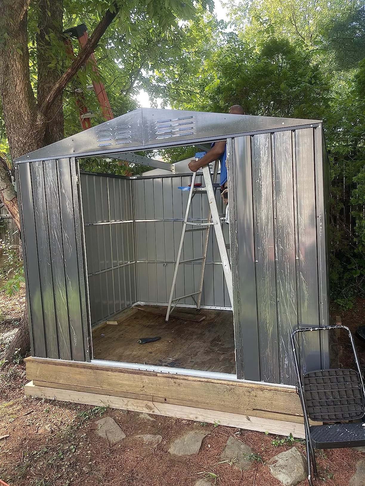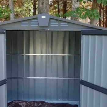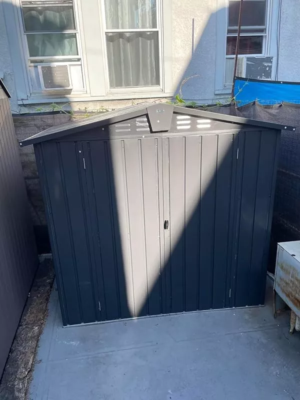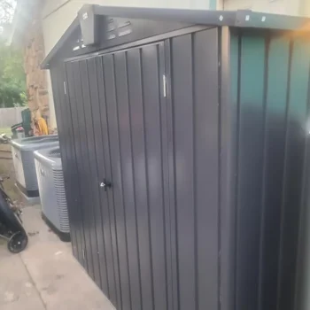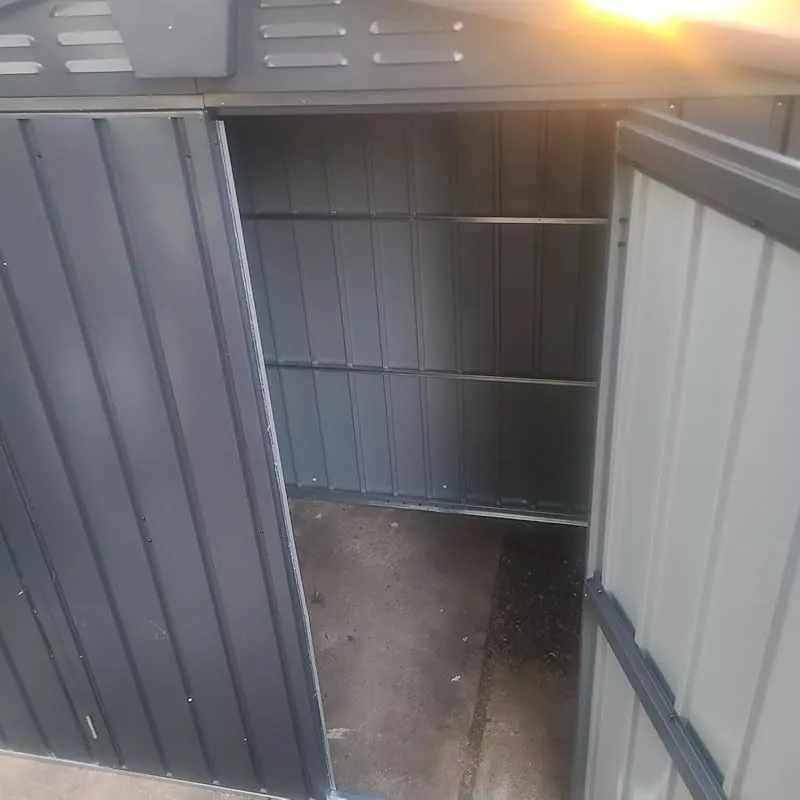 I've been on the hunt for a garden shed that could accommodate all my gardening tools and outdoor equipment, while also being sturdy enough to withstand harsh weather conditions. This shed has exceeded all my expectations! Not only is it incredibly spacious, but its durability is top-notch. The lockable door feature adds an extra layer of security gives me peace of mind knowing that my items safe and secure. I was pleasantly surprised by how well it fits in our backyard - it doesn't take up too much space yet provides ample storage room inside. It's like added another room onto our house without any major construction work involved! Plus, the galvanized steel material ensures longevity and resistance against rust or damage from exposure to elements. Overall, this shed has proven itself to be a valuable addition to our home.
