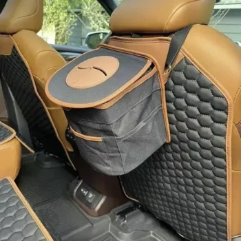 Spill-Proof Car Trash Can – Car Trash Bag – 2.5 Gal – Headrest/Central Console Attachment