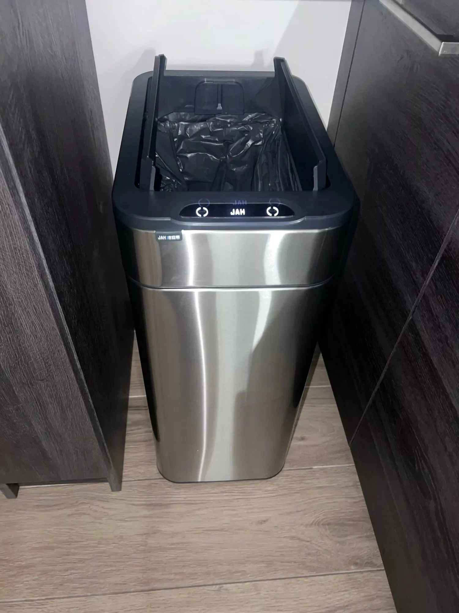 Whether it’s time to toss leftovers in the kitchen, discard papers in the office, or dispose of toiletries in the bathroom, this smart bin is perfectly suited for any room. Its rectangular shape fits neatly against walls or cabinets, maximizing space without sacrificing capacity.