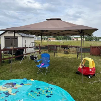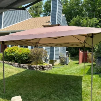 I was initially drawn to the large coverage area but what really impressed me were the additional features like wind ropes and stakes that ensure everything stays secure even on breezy days.