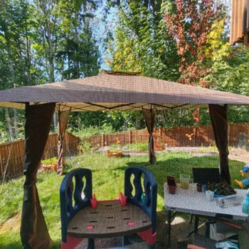 This gazebo has been a game-changer for our family gatherings. It's spacious, provides great UV protection and is incredibly easy to set up.