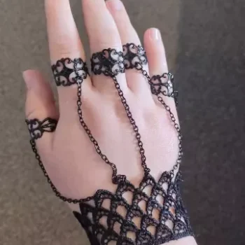 Whether you’re dressing up for Halloween, attending a masquerade ball, or simply want to express your bold sense of style, this hand harness bracelet is the perfect finishing touch. Lightweight and easy to wear, it’s as comfortable as it is eye-catching. The intricate lace pattern wraps gracefully around the wrist while the connected ring sits securely on your finger, creating a seamless gothic silhouette.