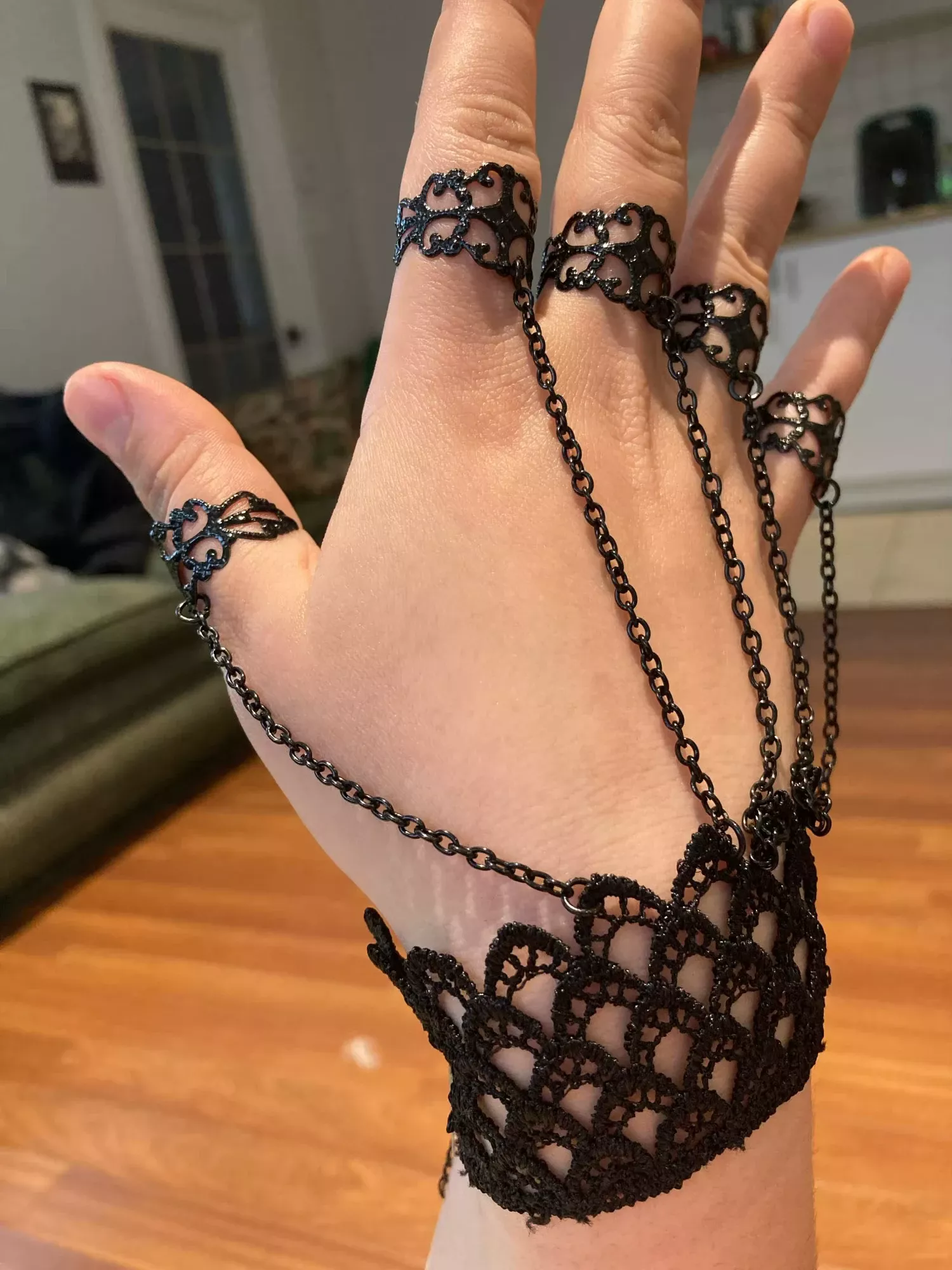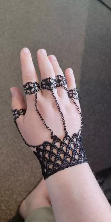 This piece has become one of my absolute favorites in my collection. I love how versatile it is – perfect for adding a touch of elegance to any outfit. The combination of the delicate black lace with the boldness of an attached ring really makes for something special 👌 Plus, despite its delicate appearance, I've found that it holds up well even when worn regularly.