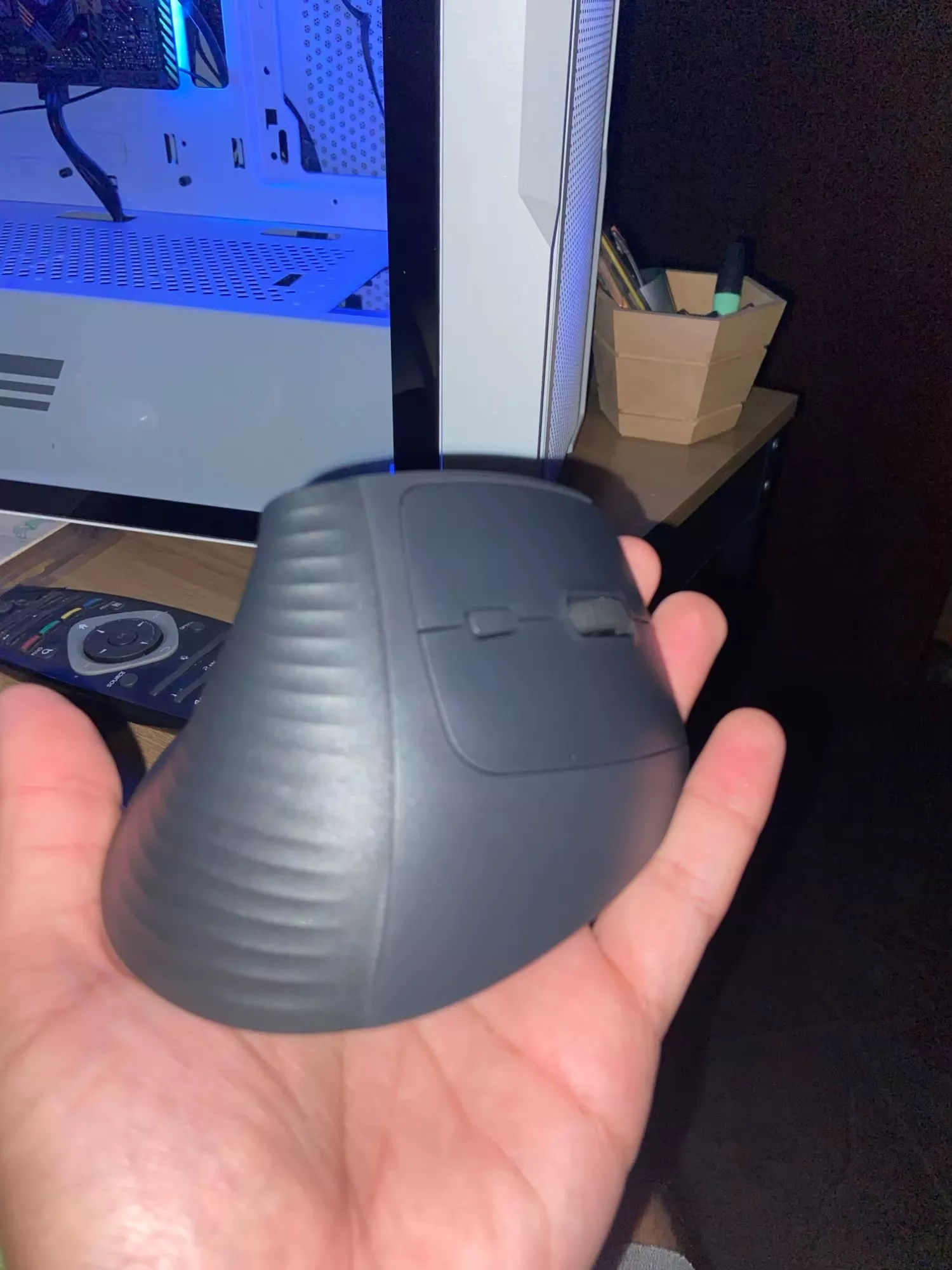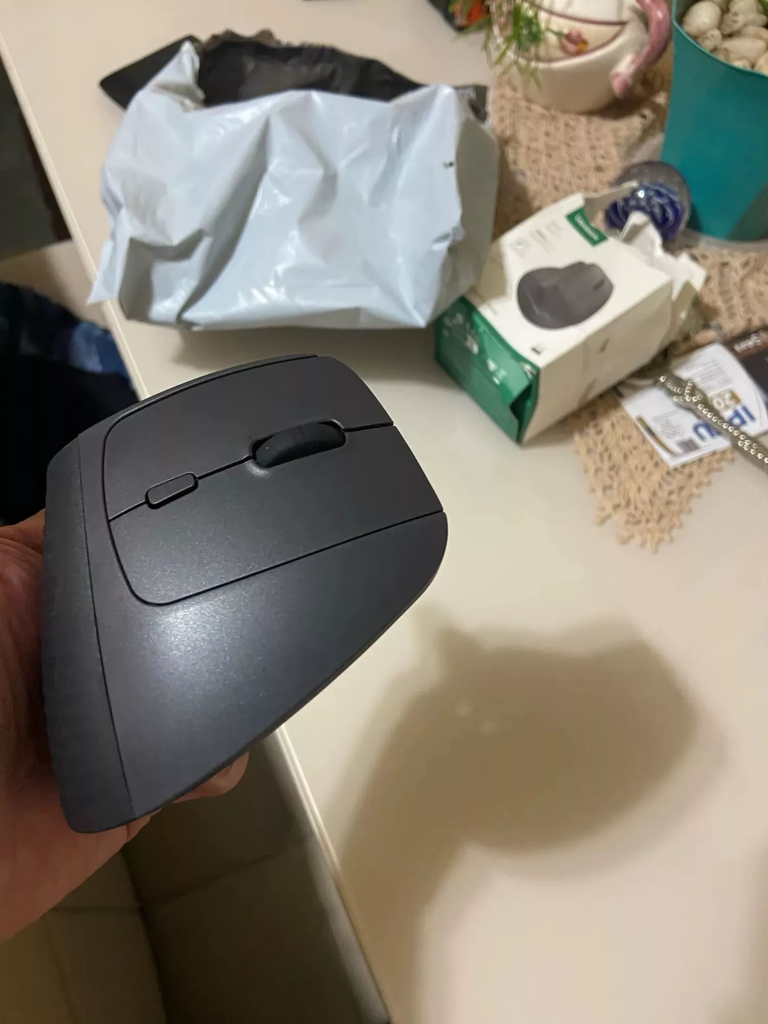 i absolutely adore this device 😍😍😍 i was initially skeptical about switching to a vertical mouse but boy am i glad i did! it fits perfectly in my hand and feels so natural like shaking hands with someone instead of twisting your arm around all day plus it doesn’t make any noise when clicking so no more annoying sounds interrupting my focus 🙅♀️ and with 4000 dpi? everything is just so precise now 👏